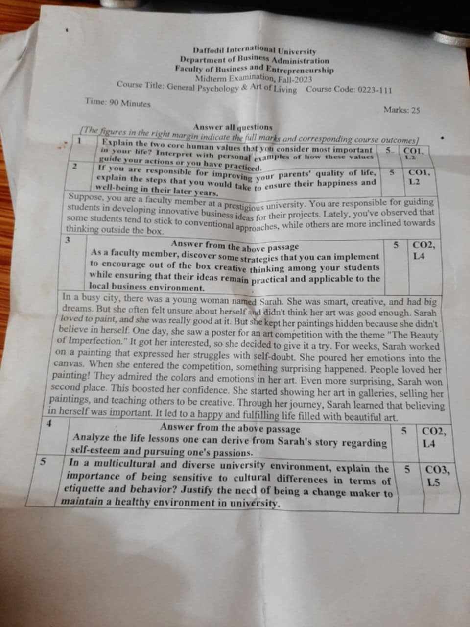 You can download 0223-111 – Art of Living - Fall 2023 - MID for Art of Living (0223-111) from the DIU BBA Archive. This question is from the Fall 2023, Batch BBA.