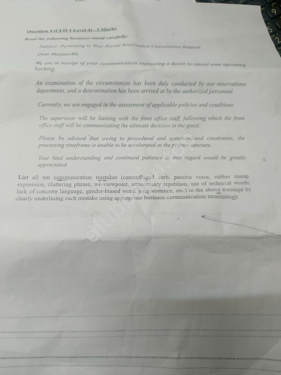 You can download Business Communication (Mid Term_ spring 26) for Business Communications (0415-125) from the DIU BBA Archive. This question is from the Spring 2026, Batch 68.